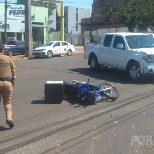 Um acidente foi registrado por volta das 13h45 desta segunda-feira (30), no cruzamento da Avenida Maripá com Rua Formosa, centro de Toledo, envolveu a moto Honda CG Titan 160 cilindradas, placa BCT 1G57, Brasil, e a caminhonete Nissan Frontier, placas NJQ 0 I 88 Brasil.