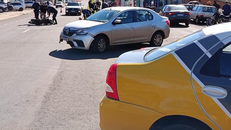 Um acidente de trânsito ocorrido hoje, terça-feira (24) deixou uma motociclista ferida na avenida Senador Atílio Fontana, esquina com a rua Paulista, em Toledo. A colisão envolveu uma motocicleta Honda Biz 125, com placa Mercosul, e um veículo Renault Clio, também com placas do Mercosul.