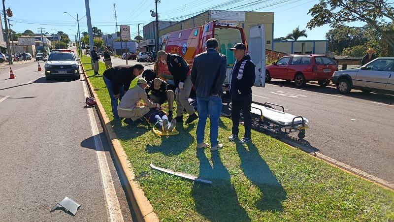 De acordo com informações apuradas no local pela reportagem do Portal Nova Santa Rosa, a motociclista seguia pela avenida no sentido Jardim Panorama – centro da cidade, quando foi atingida pelo automóvel que acessava a via vindo da rua Paulista. Com o impacto, a condutora da moto caiu ao solo e sofreu diversos ferimentos.