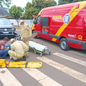 No momento em que a motociclista atravessou a preferencial, ocorreu a colisão. Com o impacto, a condutora da moto sofreu uma fratura fechada na perna direita.
