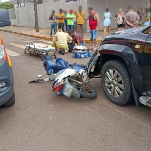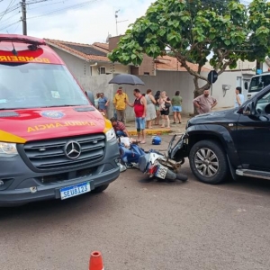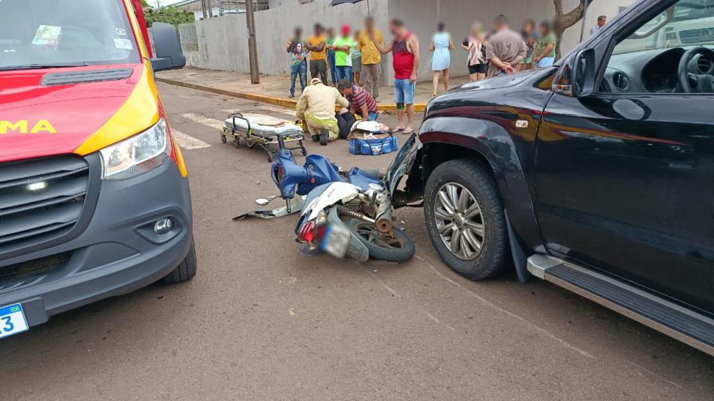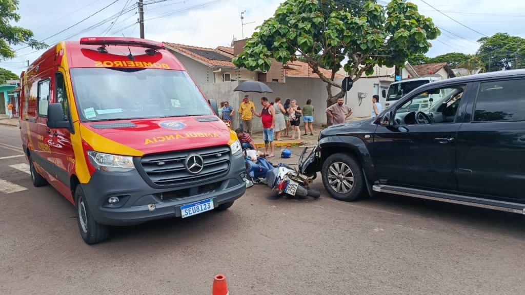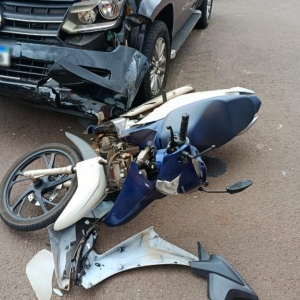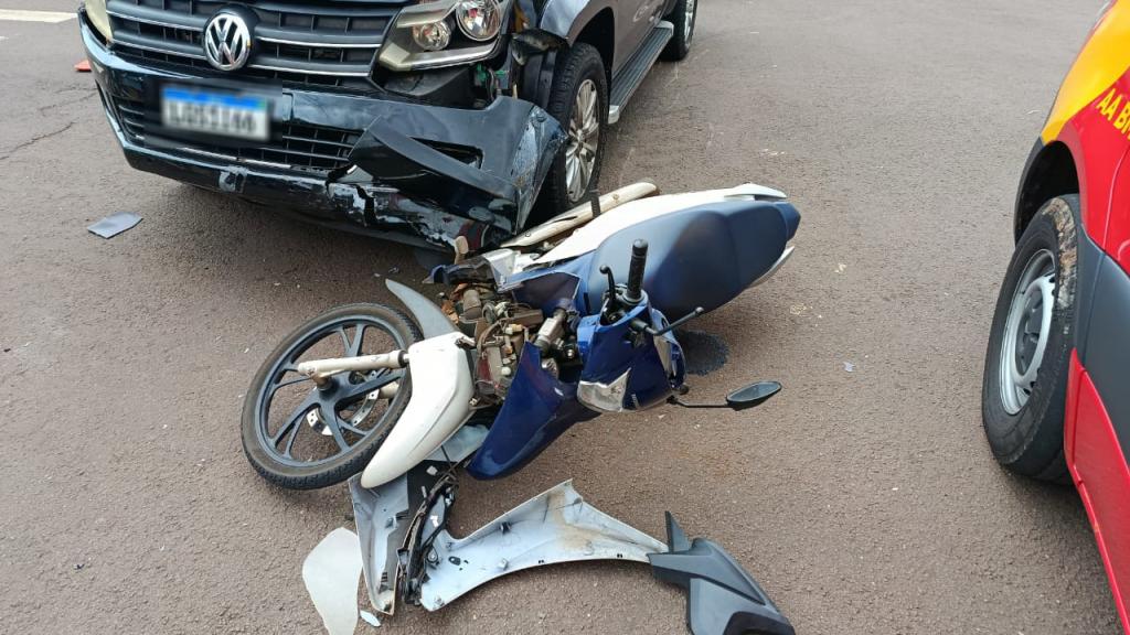 Uma colisão entre uma motocicleta e uma caminhonete foi registrada no início da tarde desta quarta-feira (17), no bairro Vila Pioneira, em Toledo. O acidente aconteceu no cruzamento da Rua do Herbal com a Rua Thomas Edison.