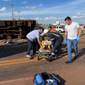 Três trabalhadores ficaram feridos. Um idoso foi socorrido por um helicóptero e encaminhado a um hospital da região em estado grave. Outras duas vítimas foram levadas por uma ambulância do Samu para atendimento médico.