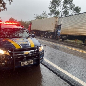 A PRF esteve no local sinalizando o trecho. Uma pista foi bloqueada, mas trânsito fluia normalmente. Em dias chuvosos, os motoristas devem redobrar a atenção.