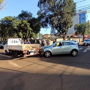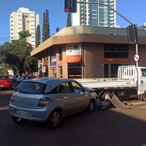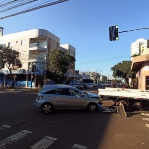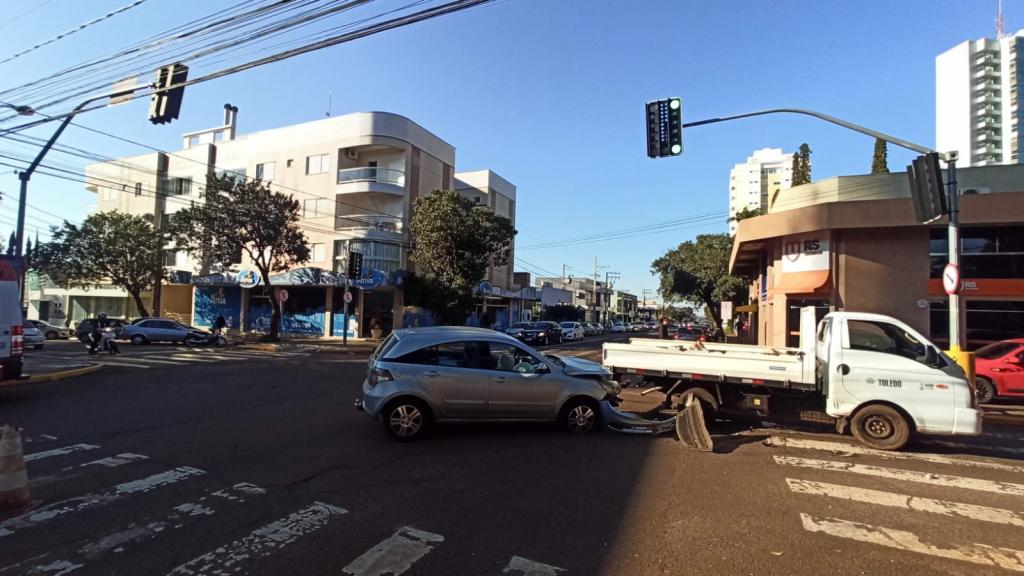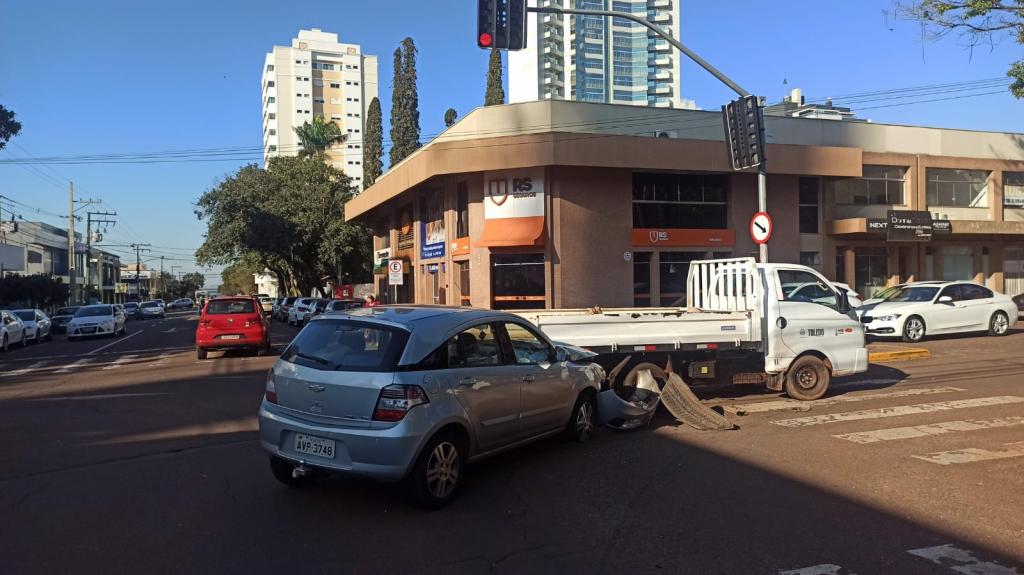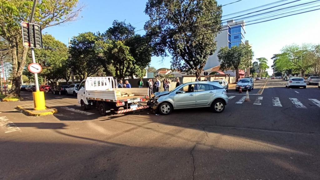 Quando o condutor do veículo da prefeitura atravessou a rua Dom Pedro II aconteceu a batida em baixo do semáforo, apesar dos danos nos dois veículos não teve vítimas, a Guarda Municipal setor de trânsito atendeu ao acidente.