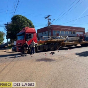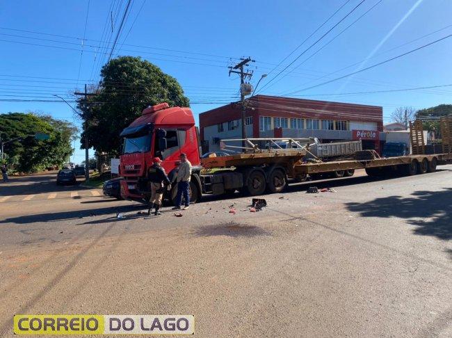 Um acidente ocorreu no início da tarde desta segunda-feira (13) na PR-488, no trevo da Esquina Céu Azul, envolvendo um caminhão Volvo e um WV Gol.