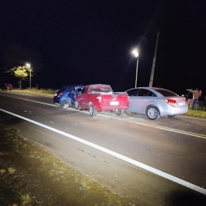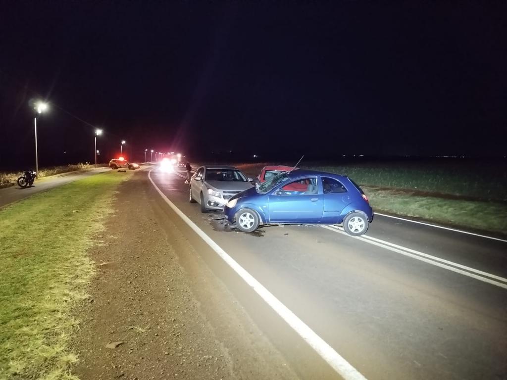Um acidente de trânsito envolvendo três veículos deixou dois feridos na PR-495, no trecho entre Pato Bragado e Entre Rios do Oeste, no início da madrugada deste sábado, dia 26 de julho de 2025.