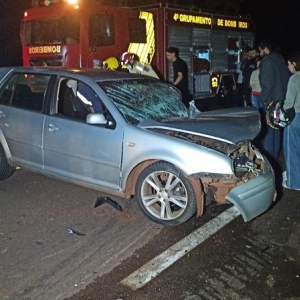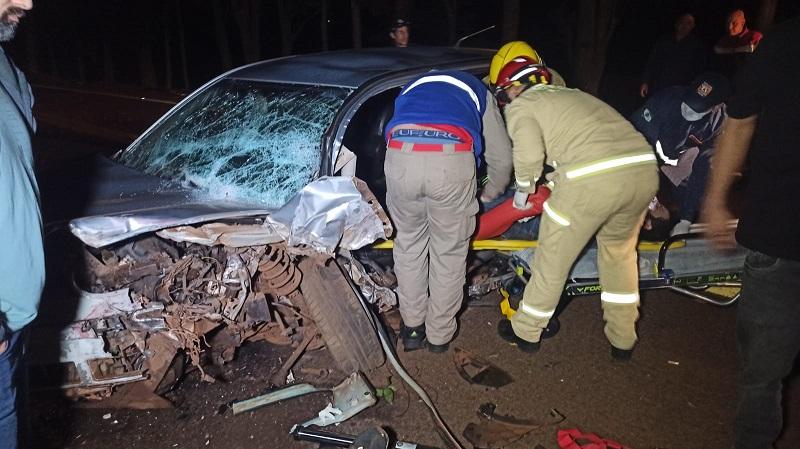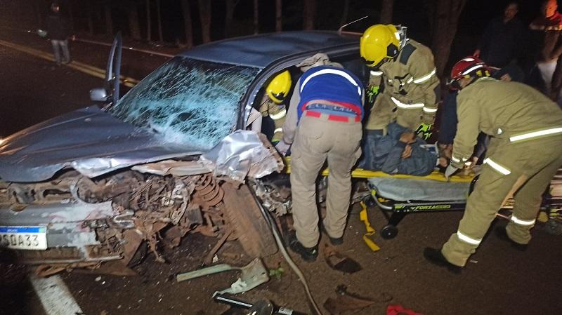 Um grave acidente envolvendo dois automóveis foi registrado na noite desta sexta-feira (23) na PR-317, entre Toledo e o trevo de Ouro Preto, no caminho para Assis Chateaubriand. A colisão frontal envolveu um Chevrolet Vectra, ocupado por três pessoas, e um Volkswagen Golf que seguia no sentido contrário.