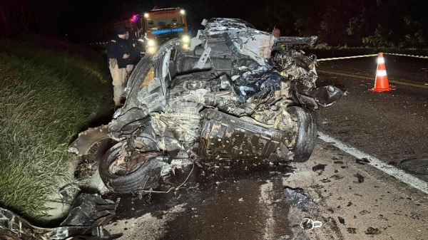 Um grave acidente de trânsito foi registrado na noite desta terça-feira (24) na BR-277, em Guaraniaçu, região Oeste do Paraná. A colisão frontal, ocorrida por volta das 19h no km 529 da rodovia, envolveu um caminhão e um automóvel GM Cruze.