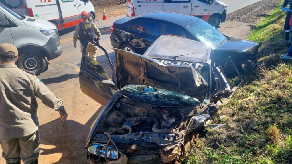 Uma colisão frontal entre dois veículos de passeio deixou cinco pessoas feridas na tarde desta terça-feira (12 de agosto), na PR-466, nas proximidades do distrito da Palmeirinha, em Guarapuava. Entre as vítimas estão uma jovem mãe, de 27 anos, e quatro crianças, com idades entre 6 e 11 anos. Três delas — a condutora e dois dos filhos — sofreram ferimentos graves.