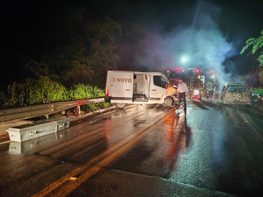 Segundo as primeiras informações, a colisão foi entre uma Van, pertencente a uma funerária de Mundo Novo – MS, que fazia o translado de um corpo para Altônia e um veículo EcoSport, que transitava no sentido contrário. Após a colisão, a EcoSport pegou fogo.