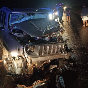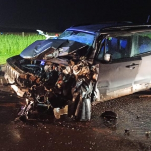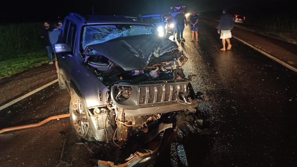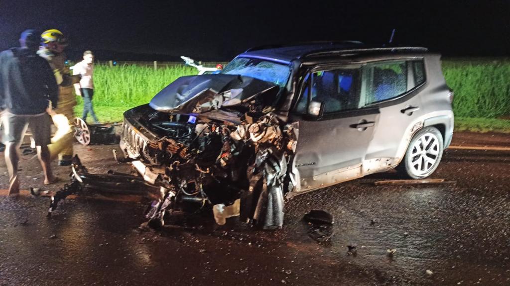 O Jeep Renegade e um Chevrolet Spin colidiram de frente na noite desta quinta-feira na rodovia PR-239 proximidades do Aeroporto de Toledo.