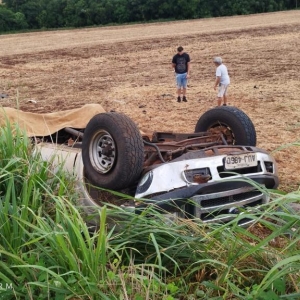 Em seguida, os dois veículos rodaram na pista, desceram um barranco, capotaram e pararam em meio a uma área de terra, sendo que a Ford ficou com as rodas para cima, e o Renault parou na posição normal.