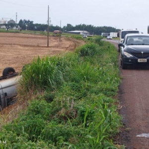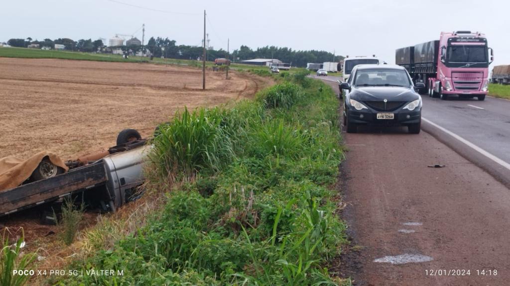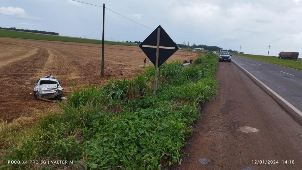 Uma colisão entre veículos, seguida de capotamento, foi registrada nesta sexta-feira (12) na rodovia BR 163 que liga Toledo à Cascavel, mais precisamente no trecho entre o Big Peixe e o distrito de Sede Alvorada.