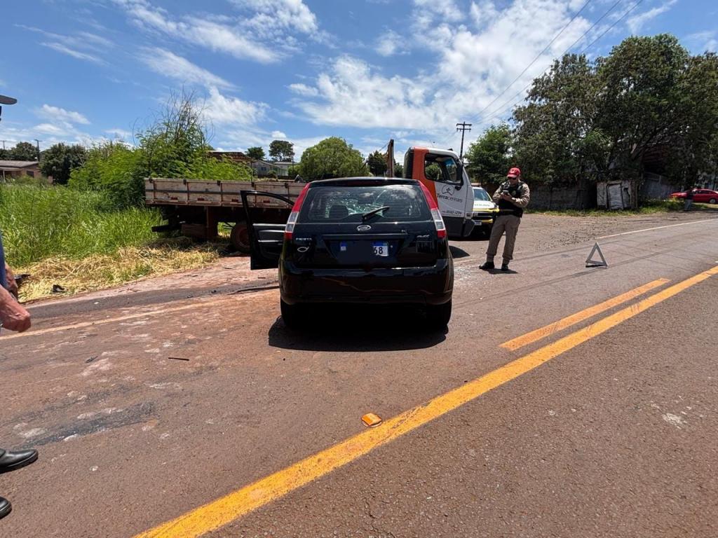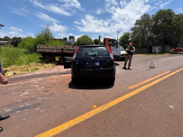 O sinistro envolveu um caminhão Mercedes-Benz 915C e um automóvel Ford Fiesta, ambos emplacados em Quedas do Iguaçu. O condutor do caminhão, um homem de 49 anos, não sofreu ferimentos. Já a condutora do carro, uma mulher de 53 anos, teve ferimentos leves e foi encaminhada ao Hospital Municipal de Quedas do Iguaçu para avaliação médica.