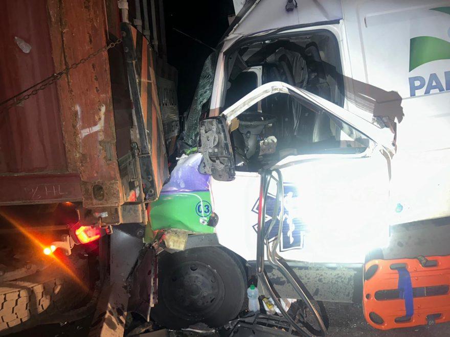 A colisão traseira aconteceu por volta das 23h40min, no km 549 da rodovia, no sentido Curitiba. Segundo informações da Polícia Rodoviária Federal (PRF), os veículos envolvidos são uma ambulância Iveco/Daily 35S14 Alltech, do município de Curitiba, e um caminhão Mercedes-Benz Actros 2651S, também registrado na capital paranaense.