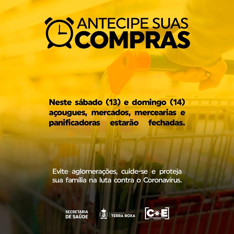 Através de decreto municipal o comércio de Terra Roxa vai fechar sábado e domingo reabrindo na segunda-feira (15).