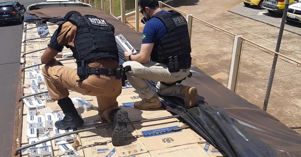 Por volta das 10 horas da manhã, os agentes da PRF apreenderam 600 mil carteiras de cigarro em um carreta bitrem abordada na BR-163, em Quatro Pontes, região oeste do estado. Minutos antes, às 9h40, equipes da PRF e da Polícia Militar haviam abordado uma segunda carreta com mais 450 mil carteiras, em Umuarama, na região noroeste.