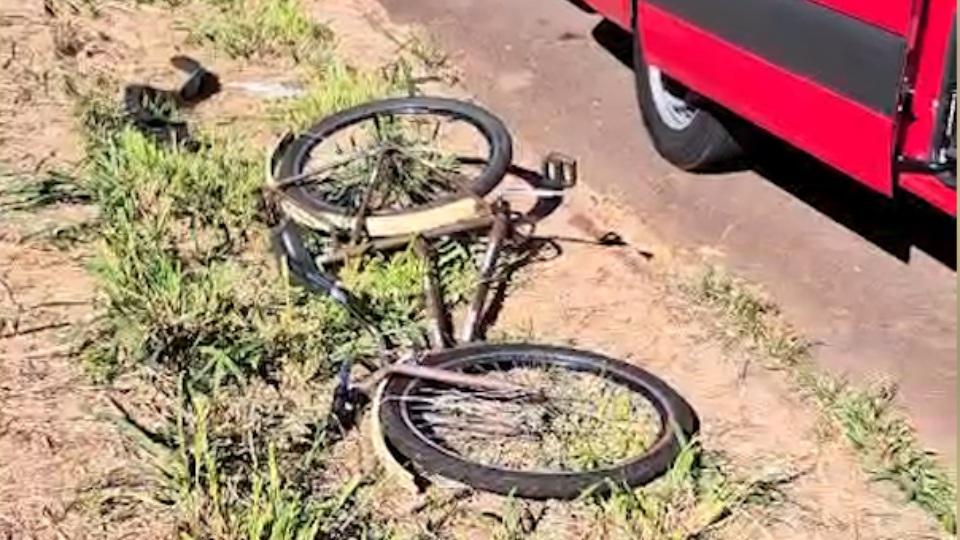 A bike teria sido emprestada pelos responsáveis do lava car. Ela rachou ao meio durante o sinistro. O homem foi arremessado e caiu na calçada, em meio ao mato.