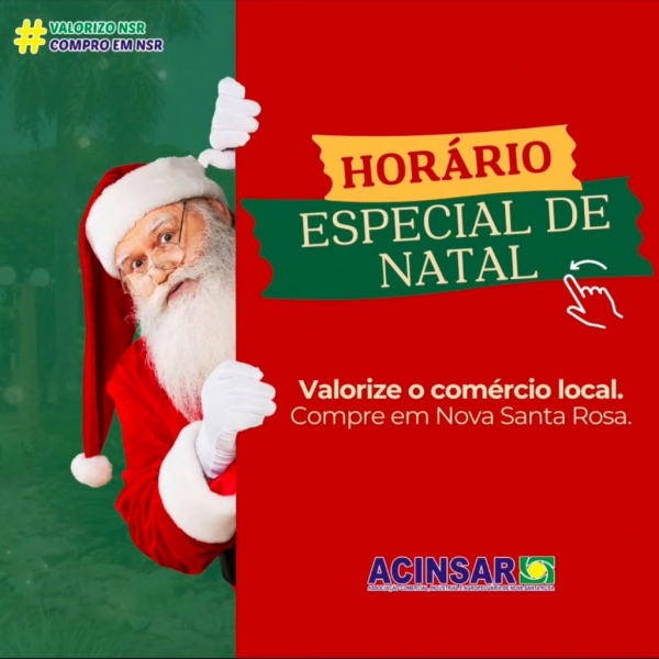 A partir de hoje (16), devido as festividades do Natal, o comércio de Nova Santa Rosa atende em horário especial.