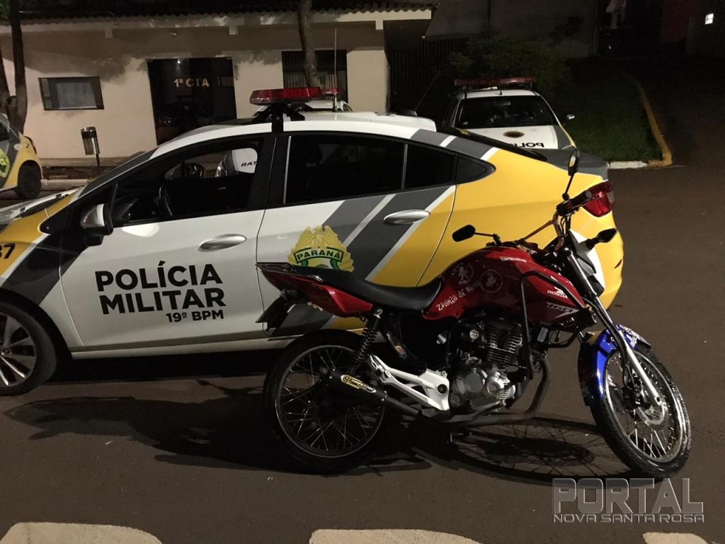 De imediato a viatura realizou o acompanhamento tático na rua Carlos Barbosa, e abordou o condutor na rua Santos Dumont, a moto Honda CG 160 Fan de placas BDV-9A24, o condutor de 21 anos identificado e não possui CNH (Carteira Nacional De Habilitação), mediantes os fatos e a motocicleta estar com características adulteradas CG foi encaminhada para o pátio do 19º Batalhão de Policia Militar.