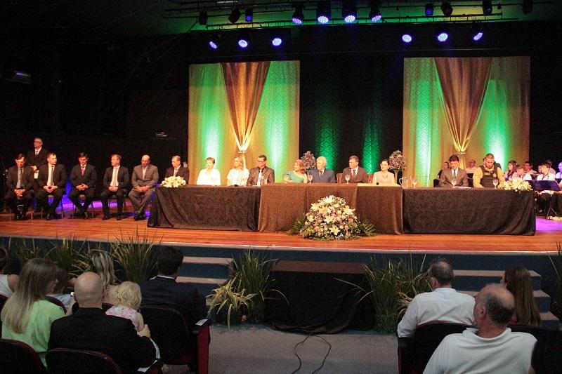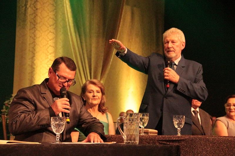 Em ato simbólico, houve também a transmissão do cargo feita pelo então prefeito Norberto Pinz (MDB).