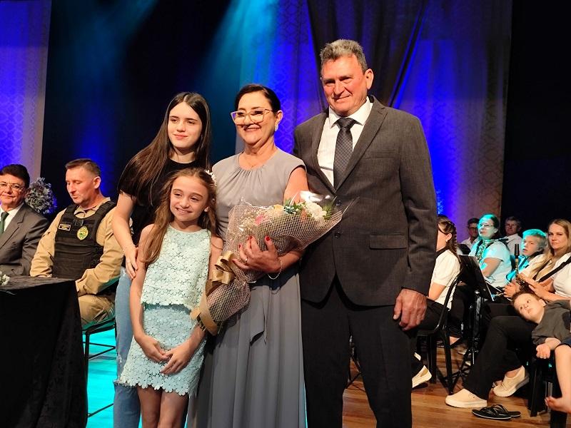 Por meio do Poder Legislativo, foi realizada na manhã desta quarta-feira (01), a cerimônia de posse do prefeito Lari Hitz (UB) e vice-prefeito Roque Lorenzatto (PP) para a gestão 2025/2028. Eles foram empossados pelo presidente da Câmara de Vereadores, Amauri Ladwig (PL).