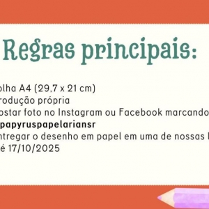 - Ao participar, os responsáveis autorizam a Papyrus a divulgar as fotos e desenhos nas redes sociais. Em caso de empate na avaliação, a menor idade será o critério de desempate.