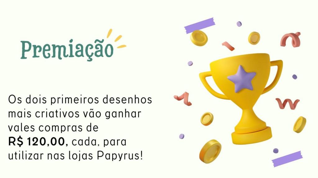 O concurso teve início em 17 de setembro de 2025 e segue aberto até 17 de outubro de 2025. Os dois desenhos com maior pontuação serão premiados com vales-compras de R$ 120,00 cada, que poderão ser utilizados nas lojas Papyrus.