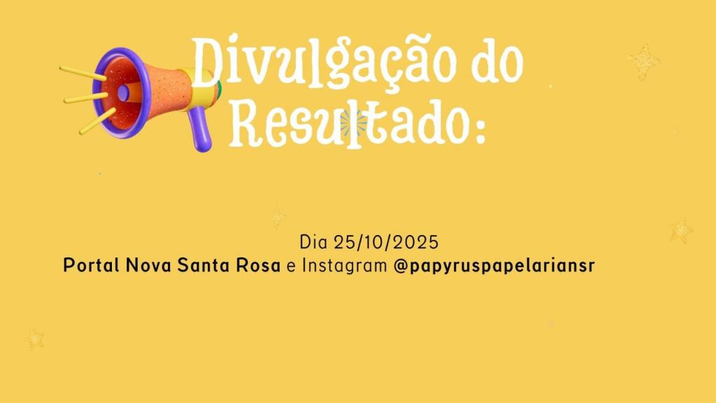 Os desenhos serão avaliados por professores convidados em parceria com o Portal Nova Santa Rosa II. O resultado oficial será divulgado em 25 de outubro de 2025, tanto no Portal Nova Santa Rosa quanto no Instagram @papyruspapelariansr.