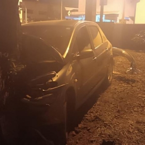 Um veículo colidiu contra uma árvore na avenida de Novo Sarandi, distrito de Toledo, na noite deste domingo.