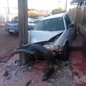 A colisão aconteceu quando o veículo trafegava pela via e o condutor perdeu controle subiu na calçada e atingiu um poste e energia elétrica em seguida o condutor abandonou o veículo evadiu-se