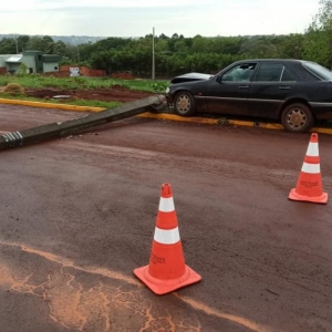Um veículo Mercedes Benz C280 bateu contra um poste de energia, no bairro Jardim da Mata, em Toledo.