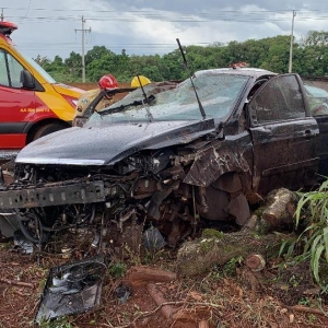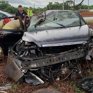 As informações são de que o carro saiu da pista, capotou diversas vezes e atingiu um poste. O veículo parou com as quatro rodas no chão, mas bastante danificado.