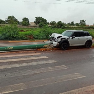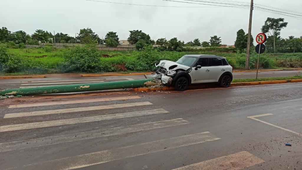 O veículo importado Mini Cooper com placas Mercosul conduzido por um homem de 44 anos colidiu em um poste no final da tarde de desta terça-feira na avenida Carlos Barbosa na região da Vila industrial em Toledo.