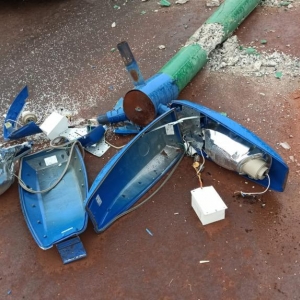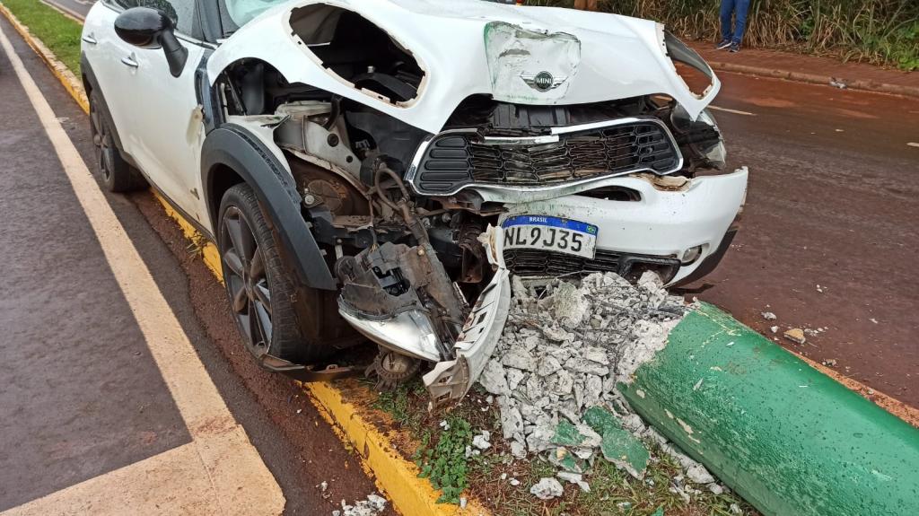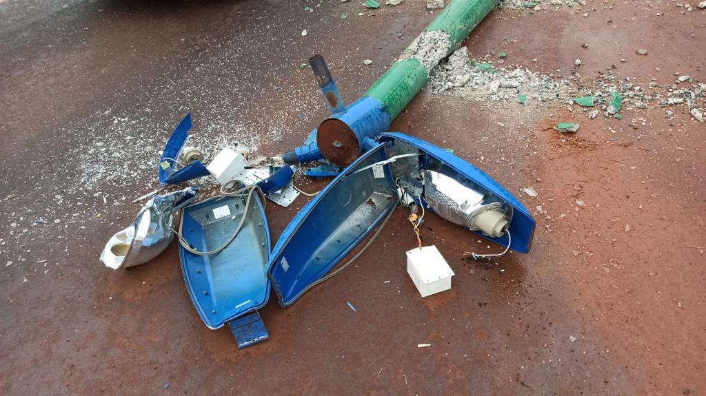 O condutor trafegava pela avenida quando em determinado momento perdeu o controle da direção do importado e subiu no canteiro central atingindo um poste de concreto de iluminação pública e derrubando-o.