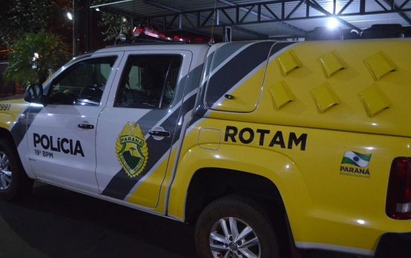 No mesmo momento a equipe Sul realizou a abordagem de um indivíduo em atitude suspeita, trajando moletom cinza, saindo do posto de combustível localizado no cruzamento da Av. Maripá com a Av. Sen. Atílio Fontana, sendo identificado o proprietário do veículo Gol localizado pela equipe.