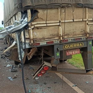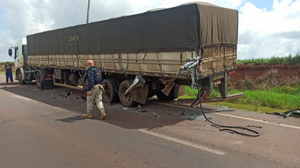 Uma carreta, com placas do Rio Grande do Sul, e uma van, com placas Mercosul, envolveram-se em um grave acidente de trânsito nesta sexta-feira (16).