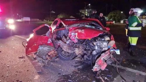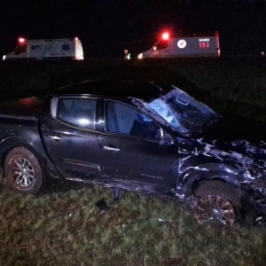 Um grave acidente foi registrado na madrugada deste sábado (4) na BR-277, em Cascavel. A colisão frontal entre uma caminhonete Mitsubishi Triton e um Volkswagen Gol deixou um casal ferido e causou danos de grande monta aos veículos.