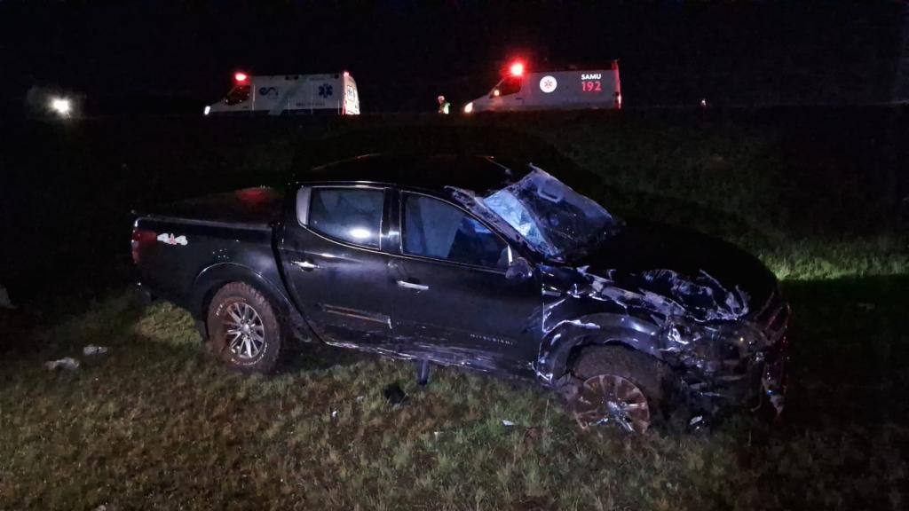 A caminhonete saiu da pista e caiu em um barranco às margens da rodovia. O condutor recusou atendimento hospitalar, mas sua esposa, que estava no banco do passageiro, sofreu uma contusão na cabeça e escoriações. Ela foi encaminhada para a UPA Tancredo, onde recebeu atendimento médico.