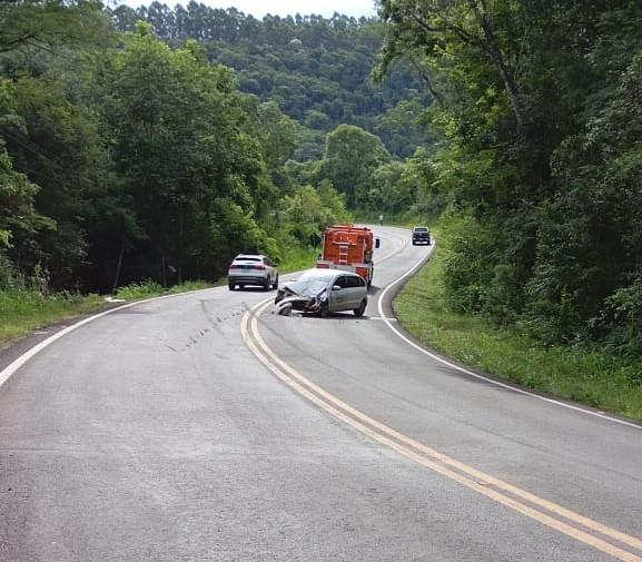 Uma colisão traseira entre uma máquina agrícola (pulverizador) e um VW/Gol, deixou uma pessoa ferida na tarde desta segunda-feira (3).