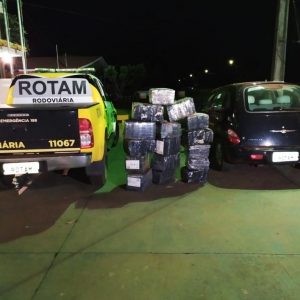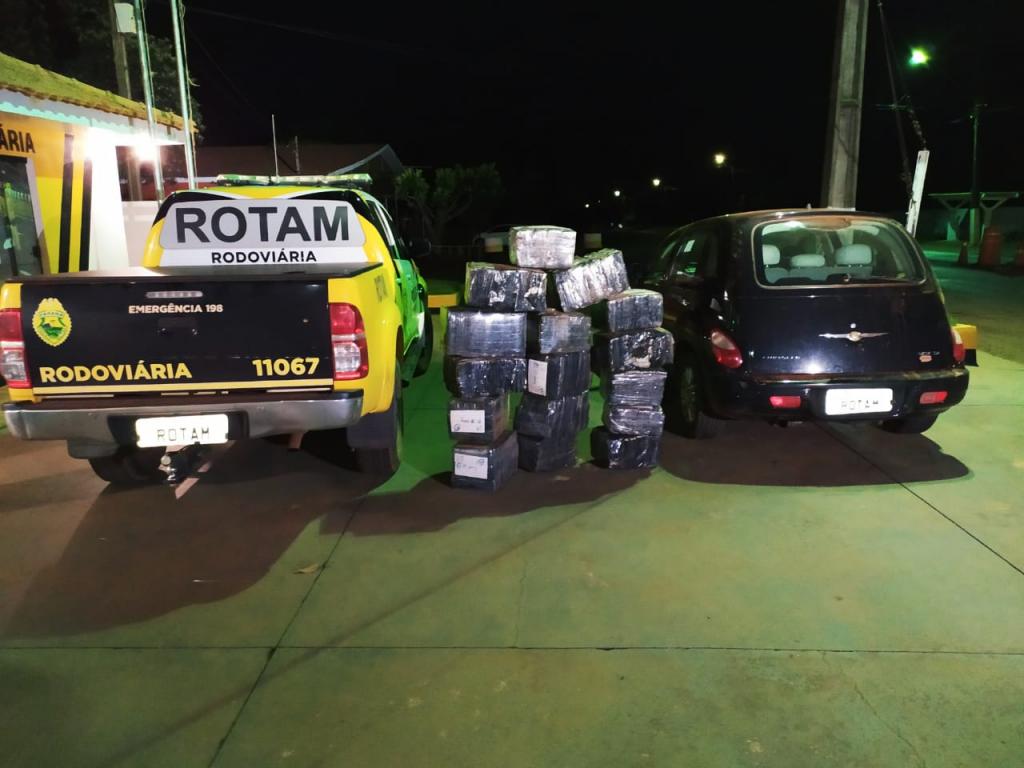 Ao vistoriar o veículo I/Chraysler/Cruiser de cor preta licenciado no município de Cascavel foi constatado que estava carregado com vários volumes de maconha, foram realizadas buscas nas imediações com intuito de localizar o condutor foragido, mas a equipe não encontrou.