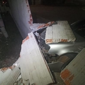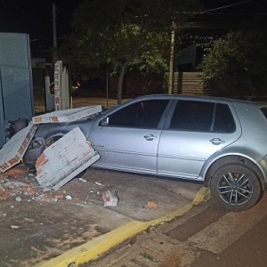Na madrugada de hoje (05) no Bairro São Franscisco, o Volkswagen Golf com placas Mercosul trafegava pela Rua Matias Fhur e o condutor ao chegar na rotatória entrou pela contramão, perdeu o controle da direção e atingiu o muro de uma residência.