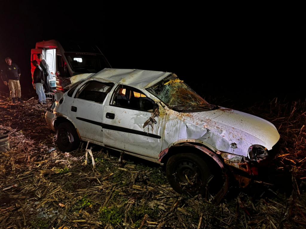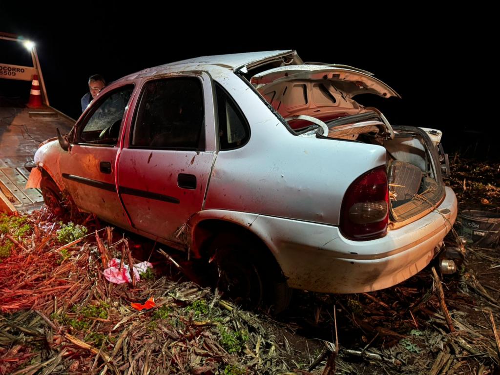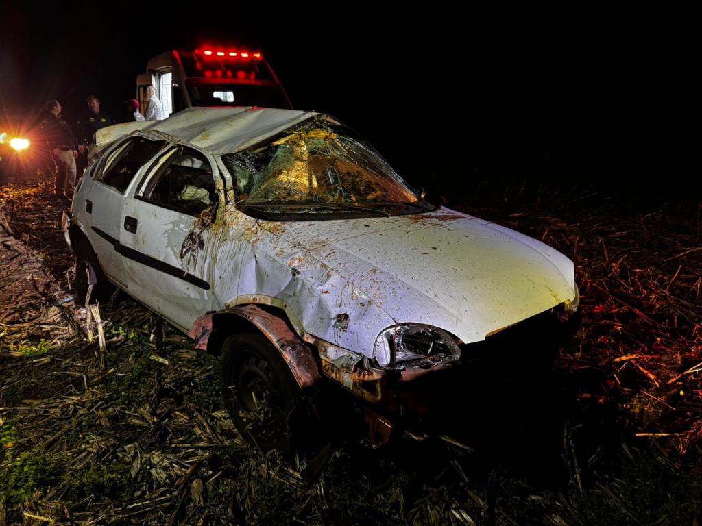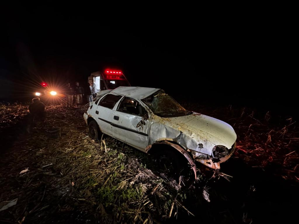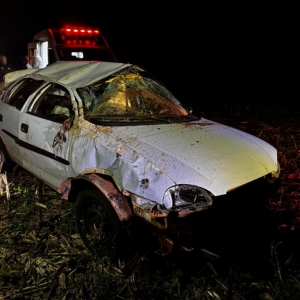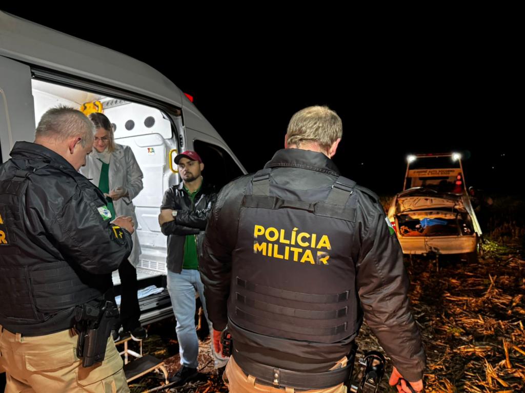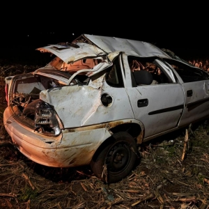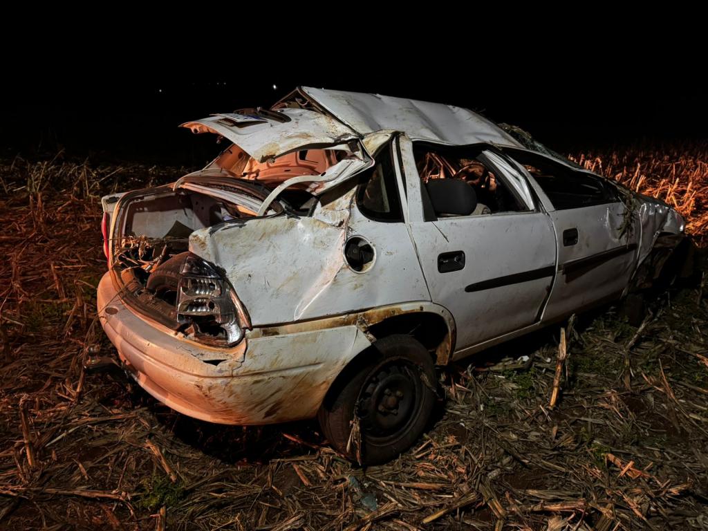 A fuga seguiu por ruas da cidade e tomou rumo ao município de Maripá. Na conhecida “curva dos Wagner”, o motorista perdeu o controle da direção e o carro capotou por mais de 150 metros dentro de uma lavoura recém-colhida de milho. O veículo ficou completamente destruído e ferramentas de trabalho foram lançadas pela plantação.