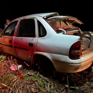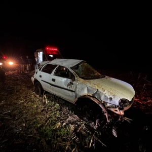 Uma tentativa de abordagem da Polícia Militar de Nova Santa Rosa terminou em perseguição e capotamento na noite desta quarta-feira (30), envolvendo um Corsa Sedan branco.