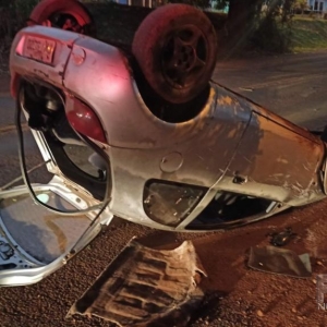 o condutor do veículo Ford Ka com placas de Cascavel trafegava pela via e perdeu o controle e atingiu uma árvore na beira da avenida e capotando em seguida ficando com as rodas para cima no acostamento.