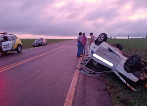 Conforme informações um Uno seguia pela rodovia, quando nas proximidades do distrito de Encantado do Oeste, Assis Chateaubriand o condutor acabou perdendo o controle da direção, vindo a capotar.