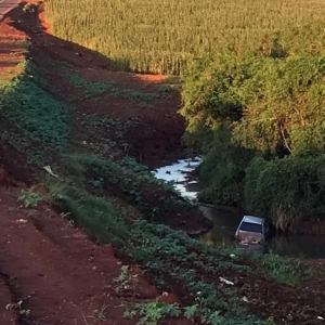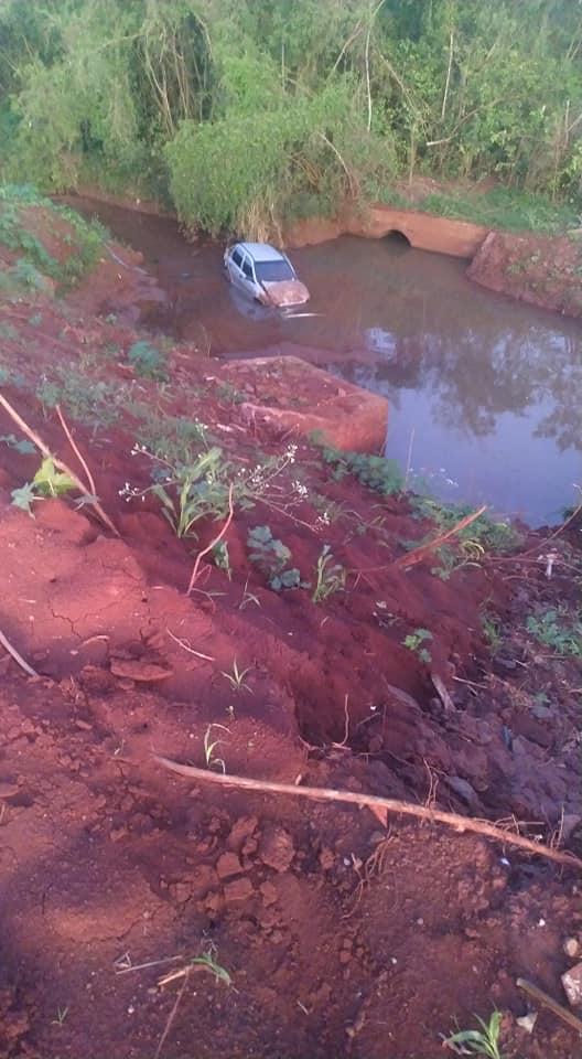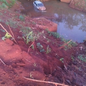 Condutor perde o controle da direção e carro cai em rio de Assis Chaeaubriand
