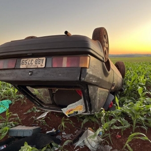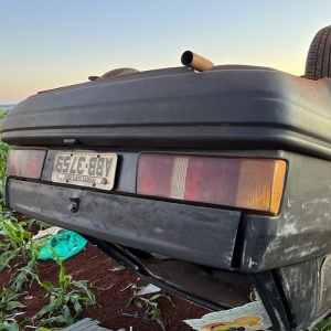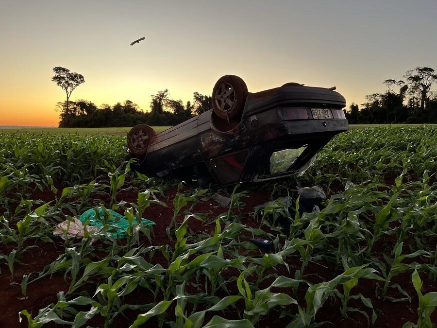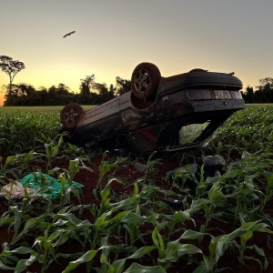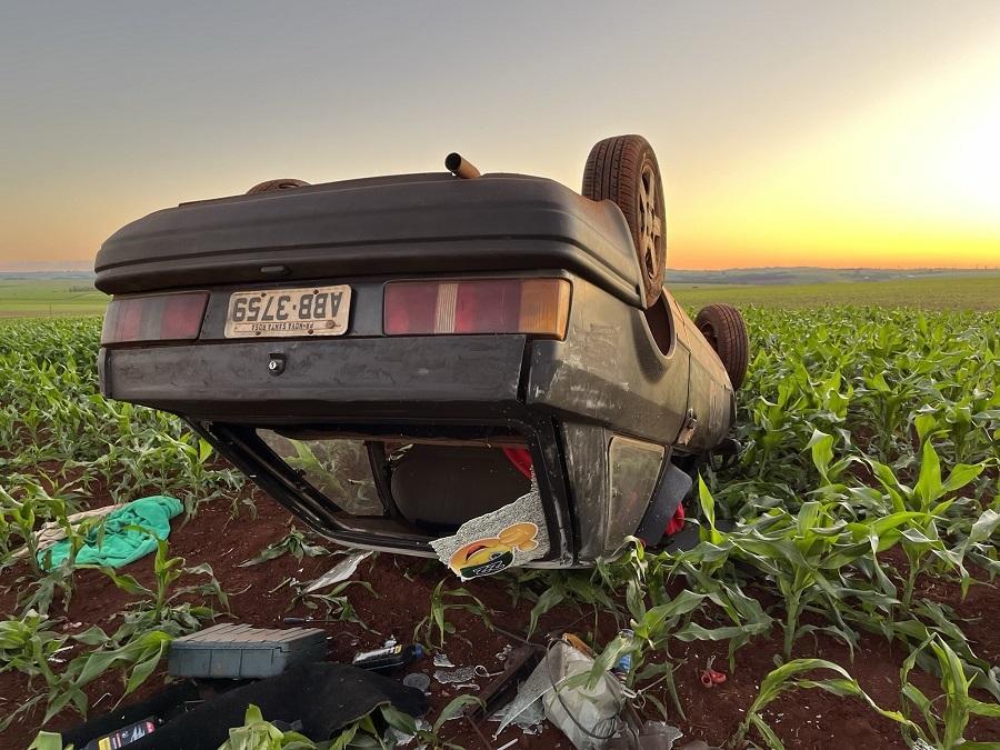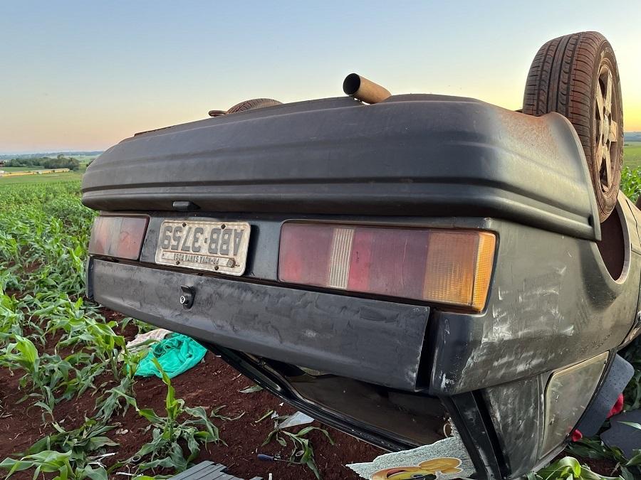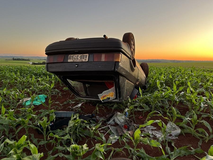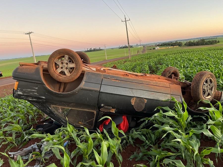 No final da tarde deste sábado, o Ford Escort de Nova Santa Rosa conduzido por um rapaz capotou e foi parar em uma lavoura de milho as margens da rodovia PR-589 que liga Nova Santa Rosa a Novo Sarandi.