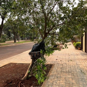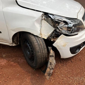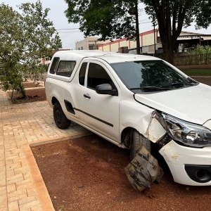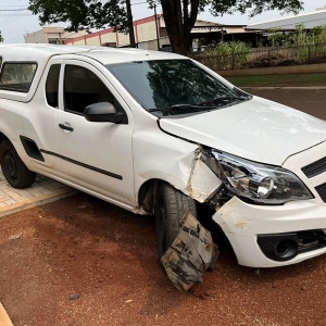 Um Chevrolet Montana, conduzido por um rapaz morador de Nova Santa Rosa colidiu contra uma árvore que estava em cima da calçada na madrugada deste domingo na Rua Toledo.