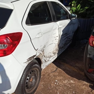 Na manhã de hoje (04), um casal trafegava com seu veículo pela rua primeiro de maio e ao chegar na rotatória com a avenida Maripá na Vila Operária em Toledo, o condutor de 40 anos teve um mal súbito, uma convulsão, perdeu o controle do veículo e atravessou por cima do canteiro da rotatória e em seguida atravessou a avenida subindo na calçada e atingiu um veículo Ford Ka, estacionado e após atingiu a porta de vidro de uma oficina de mecânica de motos.